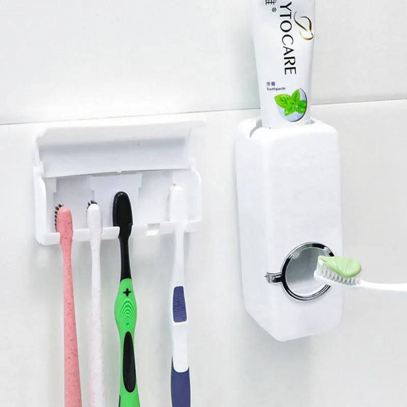 Automatic Toothpaste Dispenser + Toothbrush Holder Set Wall Mount Wall-mounted Home Tools Bathroom Accessories